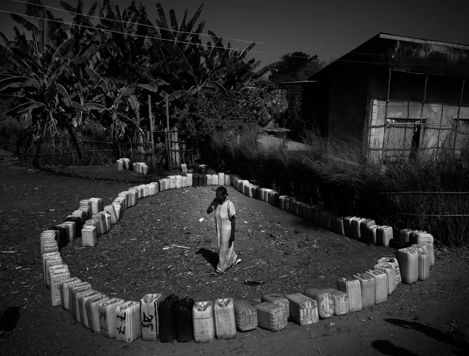 A rotina da busca pela água em longas distâncias de caminhada expõe as mulheres a riscos particulares como importunações masculinas, assédio e violência sexual. Delegar grande parte do trabalho doméstico e da gestão da água para mulheres também as afasta da escola, confinando-as a uma condição caseira e apartada. Deixa-as fisicamente mais drenadas e mais sucetíveis a problemas físicos e mentais. A crise hídrica que se torna cada vez mais severa com o aquecimento do planeta no século 21 colabora para prolongar e aprofundar a condição da mulher como uma vítima potencialmente mais exposta à mudança climática. Essa série de fotos examina exatamente isso. A crise da escassez de água é essencialmente feminina, e eu pude constatar isso claramente ao longo de dois anos de minha vida que me dediquei a compreender a crise hídrica global em lugares como Rajastão, Quênia, Bangladesh, Jordânia, Palestina, Etiópia, Bolívia e Brasil.